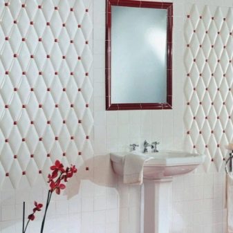 Керамично покритие с ватирана имитация на кожа ще разкраси както жилищните, така и офисните помещения. Този материал е устойчив на влага, което ще направи възможно използването му за облицовка на банята..