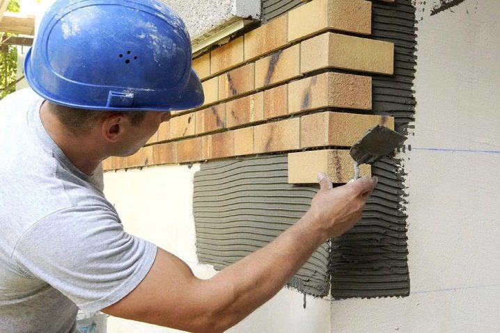Работата по полагане на клинкерни плочки не създава проблеми: елементите са прикрепени към повърхността с помощта на специално лепило.