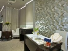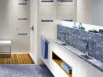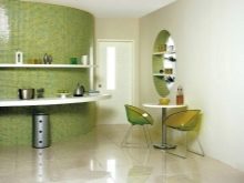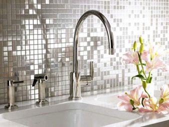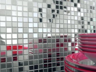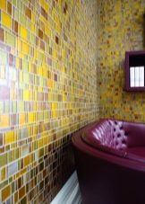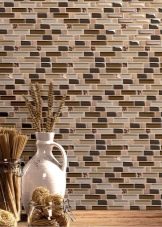 Малките размери се отнасят до мозайки. Такива елементи имат ниски изисквания и са подходящи за почти всяка повърхност. Ако използвате мозайки разумно, можете визуално да подравните стените и да придадете на интериора допълнителна привлекателност. От мозайката можете да създадете красив панел или да създадете оригинална рисунка. Струва си обаче да запомните това такива продукти могат визуално да намалят пространството.