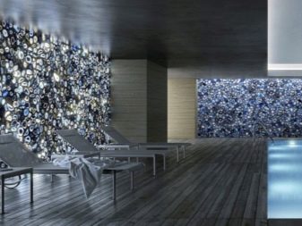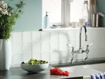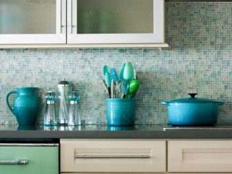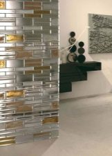 - Стъклен декор. Сред стъклените плочки има емайлирани продукти, представени в малка гама от размери. Такива детайли се използват за декориране на мозаечни фрагменти или за създаване на панели..