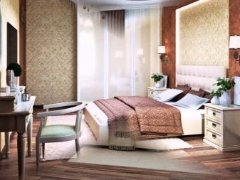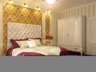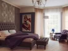 - Ако в стаята има легло, тогава е важно тапетът да е в хармония с рамката и текстила. Класическият дизайн е повторение на модела върху тапета и покривалото. Цветът на стенното покритие може да се отразява в мебелни детайли като декоративни възглавници. Но не е необходимо да вземете кафяви завеси, защото те визуално ще се слеят със стените и ще изглеждат напълно незабележими..