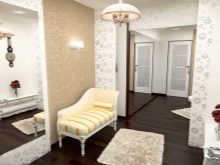 - Кафяви тапети рядко се избират в коридора. Това важи особено за тесните коридори, където тъмният цвят само ще намали пространството. Кафявото може да се използва като модел на светли стени или като основен цвят в пространството за глава..