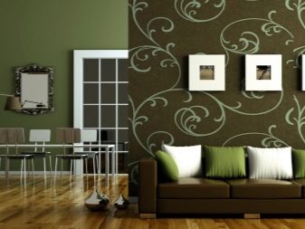 - Ако кафявият тапет има зелени нюанси или украшение под формата на цветя и растения, тогава този цвят ще изглежда много добре в стилове с екологична концепция. Добра комбинация от кафяво, освен зелено, също с бяло или светло сиво.