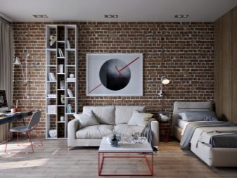 - По посока на таванското помещение често можете да намерите комбинация от кафяво и светло сиво. Понякога тапетът в цвят кафе с мляко има необичайна текстура, имитираща тухлена зидария.