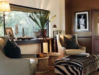 - Незаменим кафяв нюанс ще стане в африканския интериор. Той присъства не само в много животински щампи, които често се поставят върху стени под формата на фототапети, но също така често може да бъде въплътен като обикновена стенна облицовка. Декоративни елементи като африкански маски изглеждат интересно върху кафяви тапети..