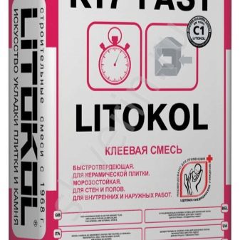- Производител Литокол представя висококачествени формулировки, но цената им е доста висока. Цената на опаковката е средно 1500-1800 рубли на опаковка. Това е водоустойчив вид лепило. Сред предимствата на лепилото руският производител споменава също, че разреденият състав не се втвърдява в контейнера до 8 часа. Преглед на композициите на тази марка показва, че те са предназначени главно за плочки и порцеланови каменни изделия..