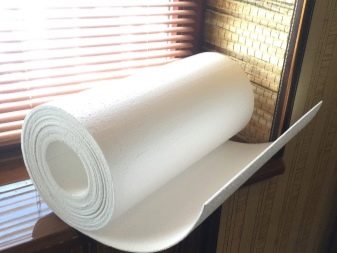 Изолацията може да бъде направена от различни материали. Най -често срещаният полип. Това е разпенен полиетилен. Дебелината му може да варира от 4 до 8 мм. Полифомът е екологично чист материал. Има хартиена подплата от двете страни. Можете да закупите полиформа под формата на ролки в специализиран магазин.. Параметри на ролката: