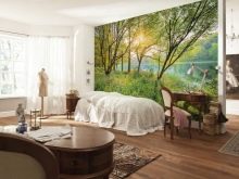- Напоследък придоби голяма популярност тапет. Тяхната особеност се крие във факта, че предната страна на платното е украсена не с повтарящ се модел или модел, а с натуралистична фотография. Най-често се използват пейзажи или отблизо цветя, животни и екзотични растения. Такива тапети изпълняват добре декоративна функция, а изборът на самия парцел е почти неограничен..
