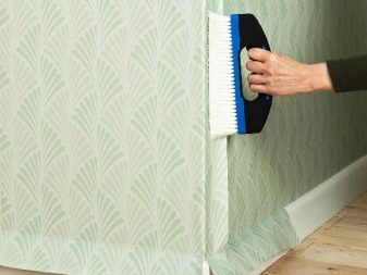 - Прикрепеното платно се изравнява от центъра към ръбовете, за да се избегне частично отделяне на платното от стената или образуване на мехурчета. Удобно е да направите това със сух мек валяк.