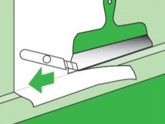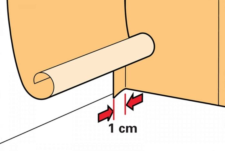 - Необходимо е да се направят надбавки от няколко сантиметра за фугата с пода и тавана. След като залепеният лист изсъхне, надбавката се отрязва с канцеларски нож.