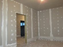 - За да залепите тапета върху гипсокартон или фиброкартон, първо трябва да попълните всички неравности и дупки от пирони или винтове. След това подготвената повърхност е внимателно шлифована и грундирана.