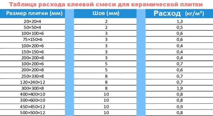 Както отбелязахме по -рано, материалът за плочки се различава по размер, предназначение и състав. Изчислението на лепилото също зависи от това. Така че, колкото по -големи са размерите на облицовъчния елемент, толкова по -тънък ще бъде залепващият слой, следователно ще са необходими повече килограми лепило.
