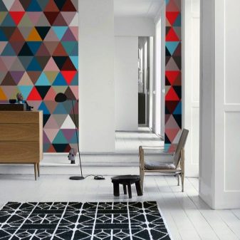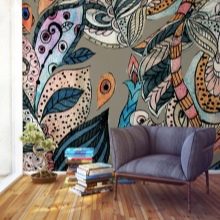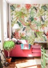 Тапетите ще изглеждат оригинални и изразителни в модерен интериор с комбинация от два или дори три активни цвята. Можете да играете с контрасти, но никога не забравяйте, че основните и вторичните цветове трябва да бъдат подчертани. Можете да намалите уловимостта на тона, ако изберете такъв, който се повтаря от аксесоари или други детайли на стаята..