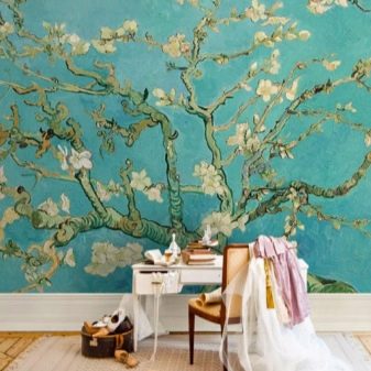 На базата на каменни стърготини се създават стенописи, за това определено се нуждаете от нетъкана основа; когато се използва трохите, оформете шаблон и изчакайте платното да изсъхне. Фина мрежа от пукнатини превръща покритието в един вид „истинска“ фреска. Тъй като може да бъде трудно да нанесете такова покритие със собствените си ръце, има смисъл да се обърнете към професионалисти, тогава резултатът определено ще ви зарадва. Други видове дизайнерски тапети могат да се използват в интериора: