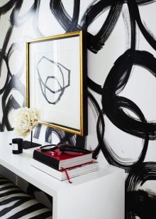 Почти всички съществуващи стилове позволяват използването на черно -бели декоративни тапети. Така че, в минималистичен интериор и в провансалска среда, в хай-тек, това ще подчертае простотата, нейното различно разбирано достойнство. В готическия стил светлите нюанси се комбинират благоприятно с богати тъмни тонове на други елементи на дизайна и визуално разширяват стаята. За стил ретро има смисъл да се създаде асоциативен масив с ерата на немите филми.