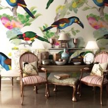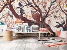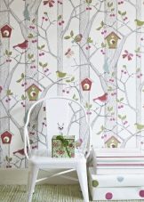 Тапетите с птици са подходящи или за деца, или за възрастни, които обичат природата особено. За момчета и отчасти за млади мъже е подходяща комбинация от студени пастелни цветове с чисто бяло, птици, нарисувани на фона на тези тонове, кацнали върху клон на дърво. Това решение ще бъде особено привлекателно, ако в интериора се използват светли мебели. Важно: модерният дизайн най -често предполага ярък орнамент само на една стена, с приложение към други монохроматични среди. Този подход помага да се избегне разнообразие, лош вкус и в същото време напълно да разкрие вашата идея..