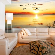 Платното в много версии е украсено с декоративни детайли като мъниста и клонки, дори се намират имитации на скъпоценни камъни и миди. За да украсят тапета, те използват луминесцентни бои, кварцово пръскане и други оригинални подходи. Едва ли ценителите на екзотична обстановка или фантастични сюжети ще намерят най -доброто решение. Моля, имайте предвид, че дори най -добрите естествени покрития не понасят механични натоварвания, и трябва да се справите по -внимателно. Или просто не използвайте там, където има висок риск от повреда – в детската стая, в проходимата стая, в коридора..