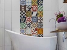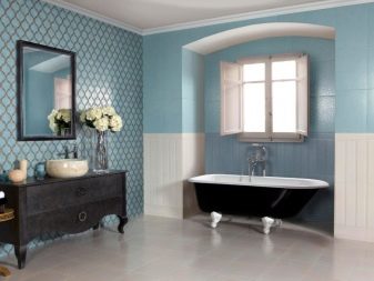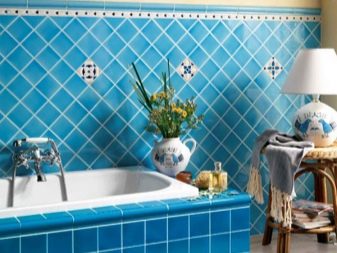 За изразителност към плочите се прилагат изображения на водна повърхност, вълни, мехурчета или обитатели на морските дълбини. За разреждане на палитрата от “студени” нюанси, в декора се използват ярки акценти..