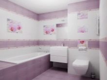 - Деликатна, романтична и стилна декорация за баня с матови плочки. Плочите с орхидеи се използват като декоративни елементи. Размер на плочки – 20×30.