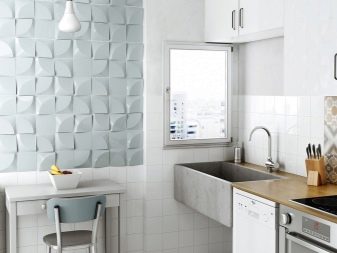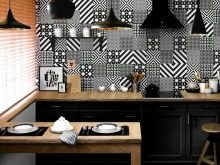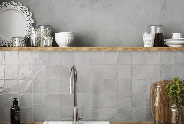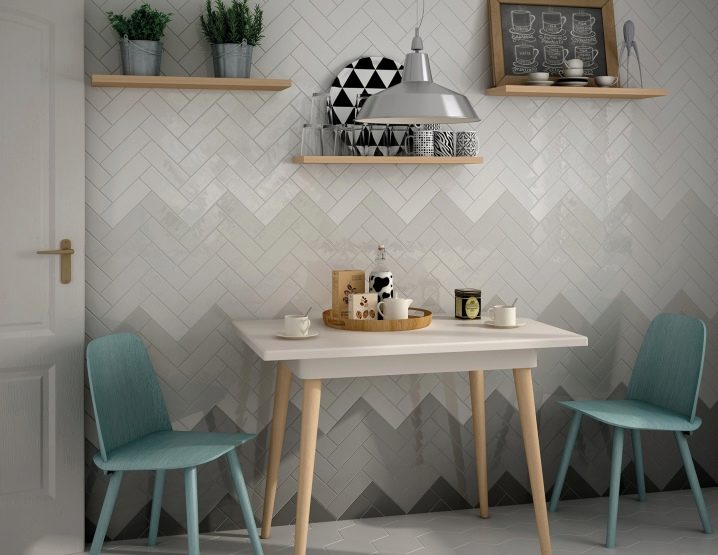 Керамичните стенни плочки с матова повърхност имитират мрамор. Размерите му са стандартни – 6,5 * 20 и 10 * 10 сантиметра. Има само 6 цветови решения, но всяко от тях има доста оригинален нюанс на основния си тон: бяло, черно, сиво, кремаво, синьо и зелено. Малки квадратчета ще се впишат идеално в интериора на кухнята и са подходящи за престилка. Можете да създадете едноцветен и да комбинирате различни цветове по ваша преценка.