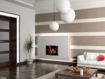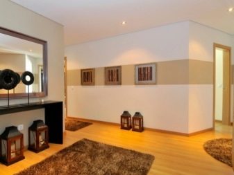 Тази декорация се използва по -често в коридори и дневни: рецепцията ви позволява да направите стаята по -широка. Опцията е подходяща и за декориране на стена в детска стая – детски рисунки и други занаяти могат да бъдат окачени на контрастни ленти. Линията може да бъде монохромна или два или три цвята. Цветовете се избират, като се вземе предвид мекият преход.