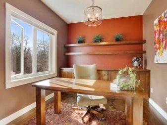 Такъв дизайн включва декориране на стените с един монохромен нюанс, но издатините, нишите и други интериорни характеристики, дори някои рафтове и мебели са боядисани с по -ярък нюанс. Стая с подобно решение изглежда по -светла и по -стилна. Рецепцията с колористичен акцент най -често се използва в съвременния интериор. В някои случаи контурите на стените и ъглите също са подчертани с интензивен цвят, за да запълнят стаята с „въздух“.