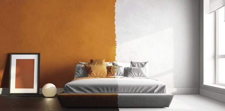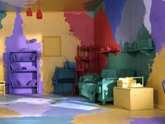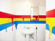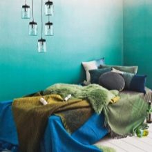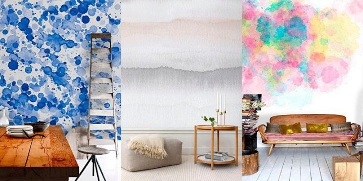 В допълнение, ръбовете на оцветяването могат да бъдат гладки и ясни, или могат да бъдат неравни и измити. По този начин обикновено се декорира една акцентна стена. В допълнение, на повърхността могат да се направят необичайни цветни ивици и петна. Това е чудесно решение за модерен интериор..