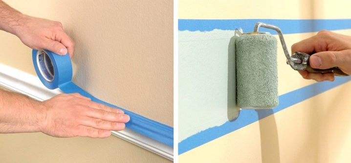 Често се използва за комбинирано оцветяване на декоративни елементи. Необходимо е също така да се защитят стените, докато се боядисват съседни зони с различен цвят. Това е чудесно решение за опростяване на комбинацията от различни цветове в една и съща равнина..