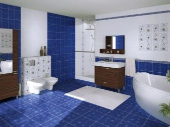 - Ако имате деликатен вкус, комбинирайте плочки с наситено синьо, добавяйки акценти и декор в темата Gzhel.