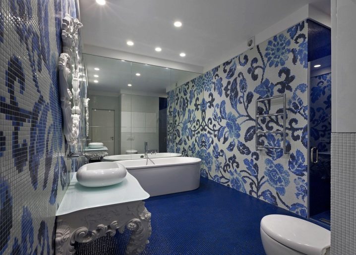 При избора на плочки по техниката на Gzhel трябва да се помни, че те са доста активни “герои” на интериора, така че те трябва да се използват в ограничени количества, като внимателно се избират спътници.