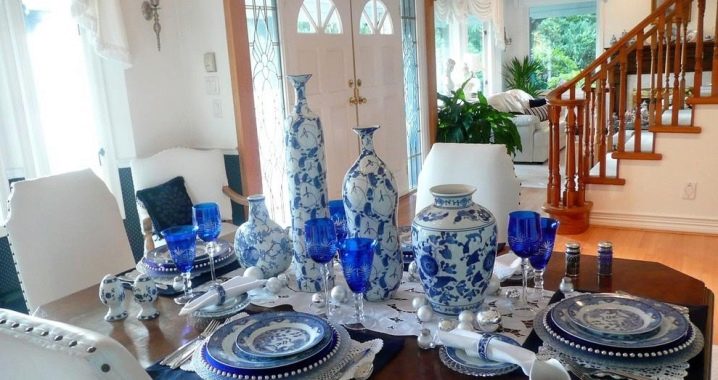 Гжелските мотиви изглеждат най-добре на добре осветени повърхности. Въпреки това, дори ако следвате тази препоръка, излишното синьо може да направи стаята студена и неудобна. В тъмни помещения синьото трябва да се използва в дозировка..