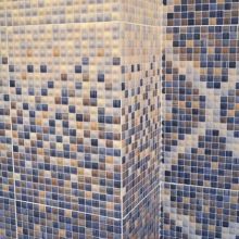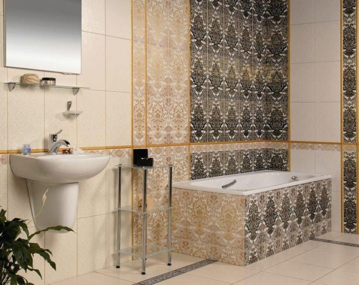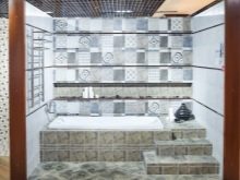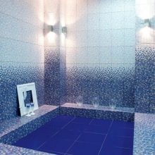 Въпреки изобилието от блясък, цветовете са доста спокойни. И все пак довършването в банята трябва да е благоприятно за релаксация и почивка. Структурата на картината е малка мозайка. Няколко нюанса на един и същи тон са красиво комбинирани помежду си и създават плавни преходи. Остъклени керамични отливки с размери 27,5 × 40 см за стени, а пода 40 × 40 см са устойчиви на петна и напукване.