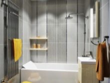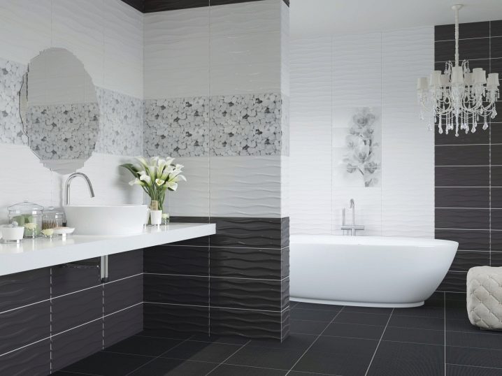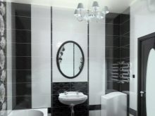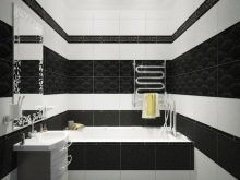 Вана с този завършек може да бъде декорирана в стил ноар – скъпо, ефектно и много модерно. Удобно е да имате бели плочки за стена. По този начин декорът може да се използва за малка баня, в която изобилието от черно би визуално намалило пространството..
