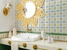 Три различни варианта на декор, представени от панели и фризове, ви позволяват да украсите основата с причудлив марокански модел. Стенните и подовите плочки имат фин ориенталски модел..