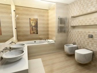 - Определете цветовата схема и изберете декора. Стените на стаята трябва да се комбинират не само с пода, но и с мебели и с водопровод, ако има такъв, в стаята. По -добре е да не правите стаите монохромни. Ако говорим за баня, тогава поне душ и мивка трябва да станат акцент, в противен случай интериорът ще бъде доста скучен. Ако изберете пода и стените от един и същи цвят, тогава трябва да изберете различна текстура на плочки..