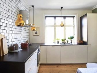 Обикновено “свиня” се избира за украса на кухненска престилка – този вид плочки е практичен, не изисква специални умения при полагане (с изключение на сложни видове), изглежда свеж и интересен. Тухлени плочки, подходящи за почти всеки стил на кухня и слушалки.