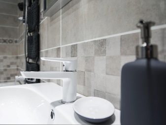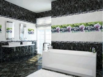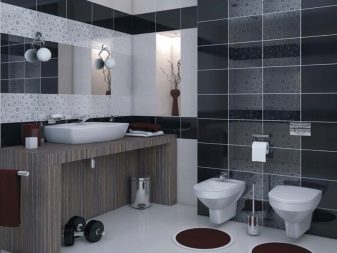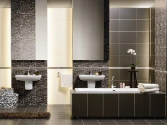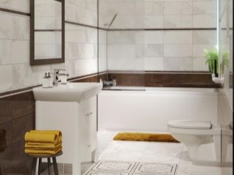 Комбинацията от контрастни нюанси визуално прави стаята по -обемна, което е подходящо както за “разширяване” на малка баня, така и за подчертаване на размера на голяма баня.