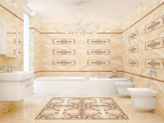 - “Агат” (“Агат”) – характеристика на тази линия лъскави плочки е модел, имитиращ мрамор, произведен в 4 цвята: светло зелено, розово, светло жълто и синьо. Тази текстура ще придаде на стаята яркост и спокойствие на летен ден, визуално увеличавайки размера на банята. Предлага се в квадратни (33,3×33,3 cm) и правоъгълни (20×30 cm) форми.