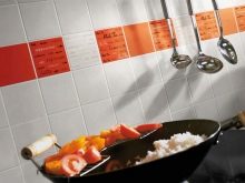 - Аплауз – лъскавите стенни плочки са изработени в плътни цветове или с текстура на тапета. Ярките цветове в контрастираща комбинация ще създадат весела и весела атмосфера за любителите на живота, кипящи с ключ.