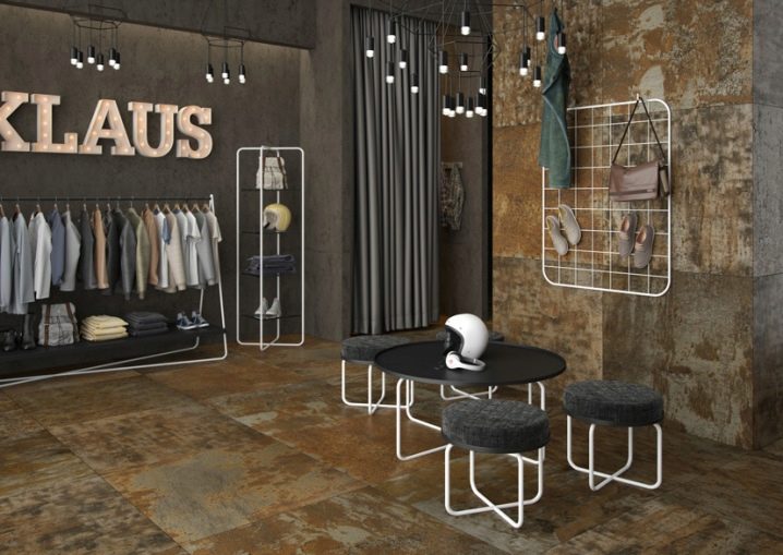 Интериорът изглежда интересно с керемидено покритие, имитиращо ръждясала стомана, груби следи от промишлено смилане, окислен бронз. С тяхна помощ можете да създадете стилен и уникален полуантичен интериор с груб ретро ефект. Този дизайн е идеален за интериор в стил таванско помещение..