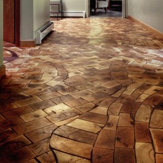 Такива подови и стенни покрития ще изглеждат солидни и могат да се превърнат в акцент във всеки интериор. Освен това в комбинация с подово отопление, това покритие ще бъде почти неразличимо от естественото дърво, затова често се използва за подови настилки в жилищни помещения.