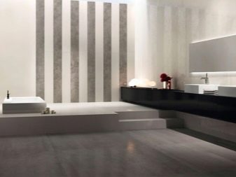 Подовите настилки от плочки могат да се използват за зониране в студио апартамент. Той върви добре с много други довършителни материали. Те могат да поставят пода и стените в зоната на кухненската престилка, а в зоната за хранене и всекидневна, да покрият подовете с ламинат. Освен това дизайнът на плочката може да повтори ламинираното покритие..
