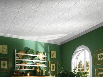 Таванските плочки трябва да се отбележат отделно. Обикновено това са модели от пяна, които са доста леки и лесни за инсталиране. С тяхна помощ таваните в жилищните помещения са завършени..