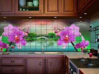 Такива плочки могат да представляват цели снимки. Това могат да бъдат продукти с изображения на макове, лалета, плодове, както и геометрични шарки. Панелът се използва за акцентна декорация. Те могат да заменят картини и други декоративни елементи. Много модели имат дизайн с триизмерна текстура и шарка..