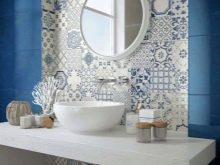 За този дизайн производителите обикновено използват плочки с размери 10 на 10 или 15 на 15 см. Такива петна могат да имат както геометричен, така и етнически или флорален дизайн. Покритието е идеално както за стени, така и за подове.