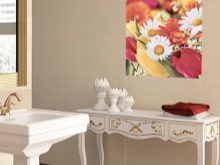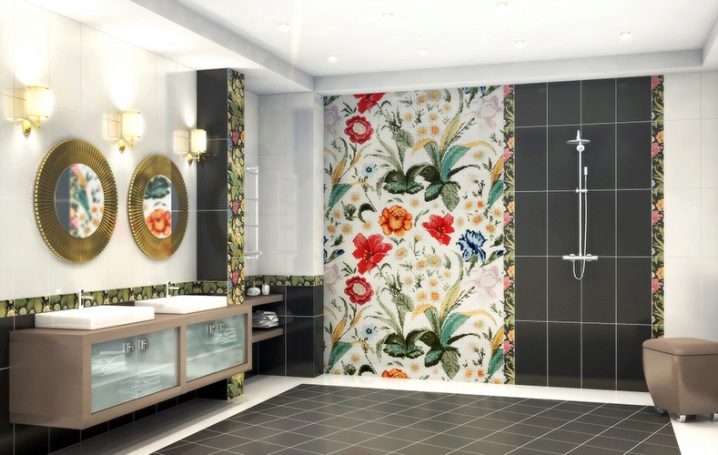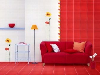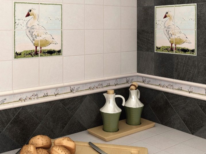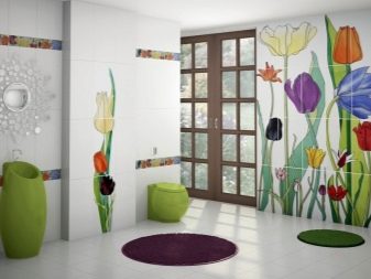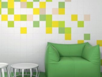 Обикновено, тази плочка се използва за акцентна декорация в интериора на кухня, баня или детска стая. Но за такива модели дизайнерите препоръчват да направите светъл гланциран фон или най -неутралната декорация на стена. Такова покритие няма да изглежда твърде ярко и безвкусно..