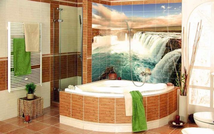 Дори душове са облицовани в банята. Освен това с помощта на плочки можете красиво да украсите басейн, сауна или дори баня..