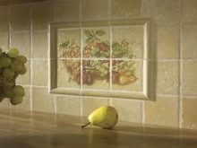 Такива плочки могат да представляват цели снимки. Това могат да бъдат продукти с изображения на макове, лалета, плодове, както и геометрични шарки. Панелът се използва за акцентна декорация. Те могат да заменят картини и други декоративни елементи. Много модели имат дизайн с триизмерна текстура и шарка..