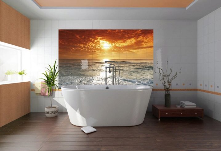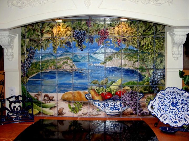 Това покритие изисква ясно подравняване на шаблоните и правилно оформление.. Нещо повече, особеността на такъв декор е, че можете да си купите готови боядисани проби и само да ги поставите правилно или можете да монтирате монохроматично покритие, само след това да боядисвате такива плочки със специални бои. Този дизайн сега е особено актуален, защото ще изглежда оригинален и уникален..