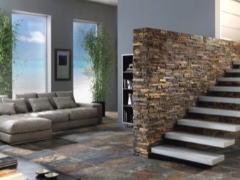 Такива модели изглеждат възможно най -естествени. Обикновено продуктите с каменен дизайн се използват за вътрешна декорация на стени или подове в помощни помещения..